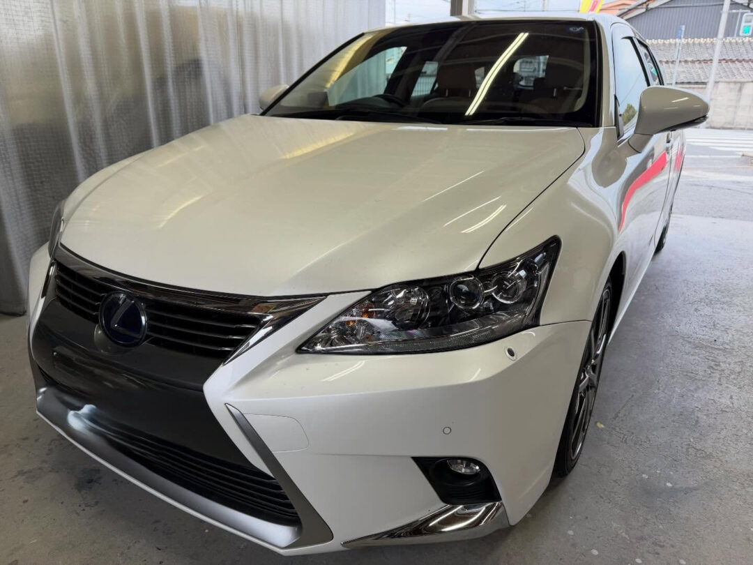 さて、本日ご紹介するのは、レクサスCT200になります✨フロントドアにちょっと大きな凹みがあったんですね。でも硬い塗装と鉄板のおかげで軽傷。軽自動車だったら、ドア交換になってたかもしれません