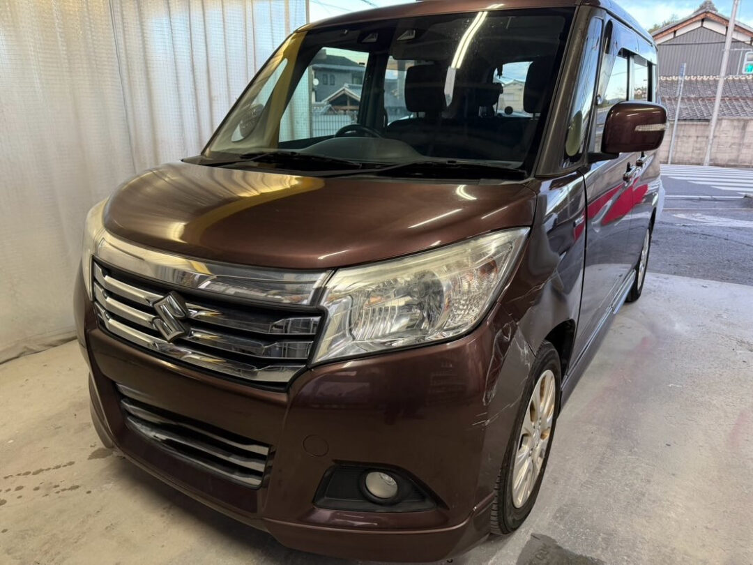 Let me introduce the Suzuki Solio that we finished working on at the end of the year✨ The front bumper and front door, which hit the left front against a guard rail, were carefully repaired with sheet metal, and the front fender was replaced with a new one Certainly, replacing everything with new parts makes it shiny, but repairs can make it look just as beautiful The price is much more reasonable, which is kind to your wallet